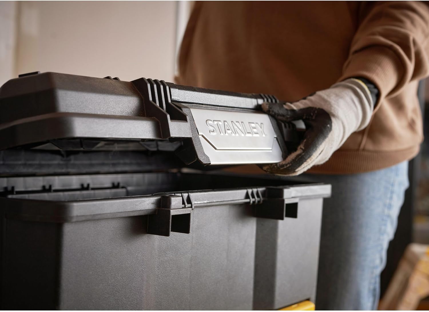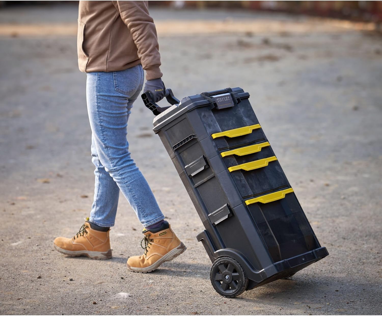 Product Description Introducing the STANLEY 3-in-1 Modular Rolling Workshop, your ultimate companion for tool organisation and mobility. This robust and versatile storage solution is designed to meet the demands of both seasoned professionals and those tackling projects around the home. With its modular design, this rolling workshop offers a seamless way to store and transport your essential tools. The workshop features a large flip-bin, detachable deep and shallow drawer unit, and a detachable tool box with a removable tote tray, providing ample space for power tools, hand tools, and small parts. The one-touch latch ensures quick access to your tools, while integral rear pockets and an integrated V-groove support a variety of tasks, from sawing to storing longer items. Built with durability in mind, the STANLEY 3-in-1 Modular Rolling Workshop includes heavy-duty wheels and an aluminium telescopic pull handle, making it easy to maneuver across different terrains. The padlock eye adds an extra layer of security, ensuring your tools remain safe and secure. Whether you're on a job site or working on projects around the home, this rolling workshop is designed to help you stay organised and efficient. Trust in the legacy of STANLEY to deliver a tool storage solution that stands the test of time. Set Contains: 1 x Rolling Workshop