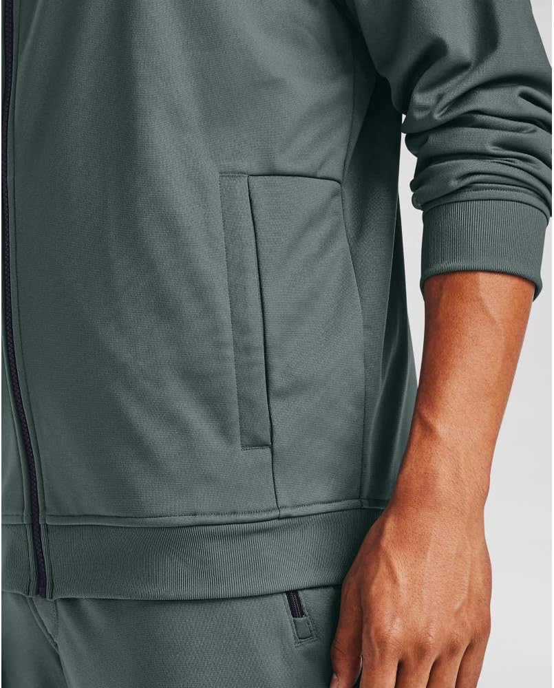 Smooth tricot knit exterior with a brushed interior for soft comfort & warmth. Material wicks sweat & dries really fast. Rolled collar seam construction gives a clean, polished look. Open hand pockets. Ribbed hem & cuffs.