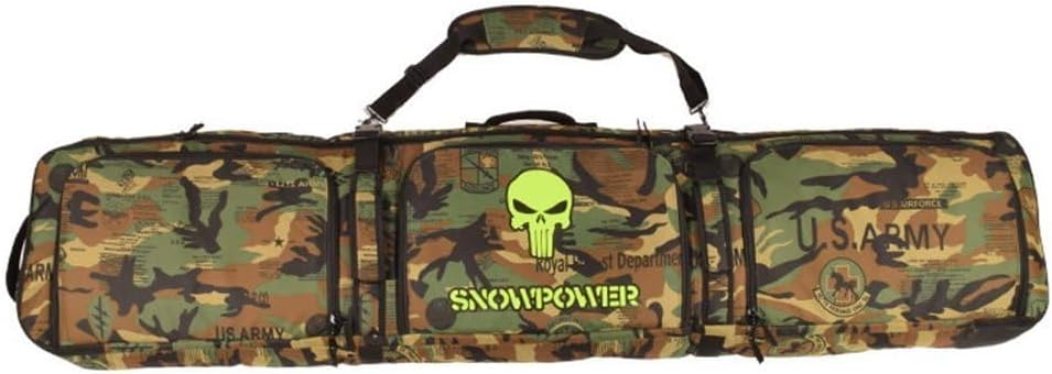 Unistrengh Snowboard Bag Durable Waterproof with Adjustable Shoulder StrapMaterial: Oxford fabric (Jungle Camo) / 100% Polyester(Maple Leaf camo)Size: 146cm/156cm/166cm/180cm Three independent external storage pockets,waterproof.One main zipper pocket for snow/skis board.Feature:1. Skis and Snow board general purpose.2. Large capacity, all ski equipments (Boards, boots,helmet,protective gear,ski clothes) full in a bag.3. 3-Layers of thickened High Absorbent Cotton Pad, stronger protective ability,also can be carried by air consignment.4. 3 separate store pockets, classified and stored, more hygienic and convenient.5. Fashionable design, bright color,with a high recognition,avoid loss in public place, easy to recognize.6. With a ring pull head, more safety in the air consignment.7. All metal slings are stronger and more durable.8. The thickened handlebars, more comfortable to ease the friction between the hand and the straps.9. 3-Ways for carry, tote,shoulders bag and messengers bag.Pls Notes:1.Pls pay attention to the size before purchasing.2.Care: Hand wash with cold water or 30℃-40℃ lukewarm water.3.Tolerance: manual measurement, within 0.39"-0.79" deviation.We focus on making customers enjoy our products at a reasonable price. After all, we are customers, too, so if you have any questions or have a wonderful idea about this skis/snowboard bag, you are always welcome to contact us by e-mail, we will answer you within 24 hours.