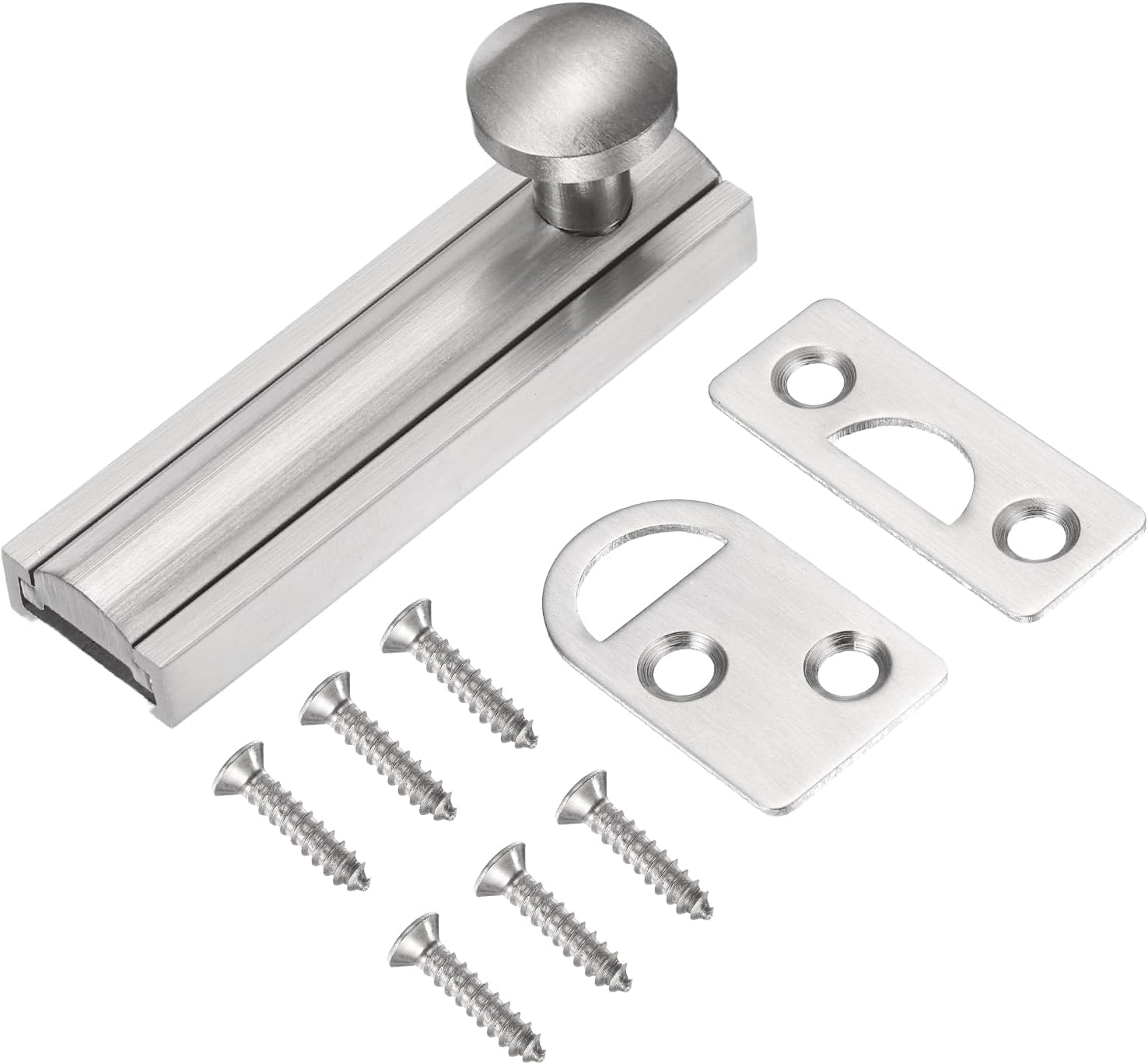 • Easy Installation: The door bolt comes with surface-mount fasteners and screws for vertical or horizontal installation. Mark the positions for both the bolt and strike plate on the door and frame. After initial installation, adjust the bolt to ensure it engages smoothly with the plate before fully tightening all screws.