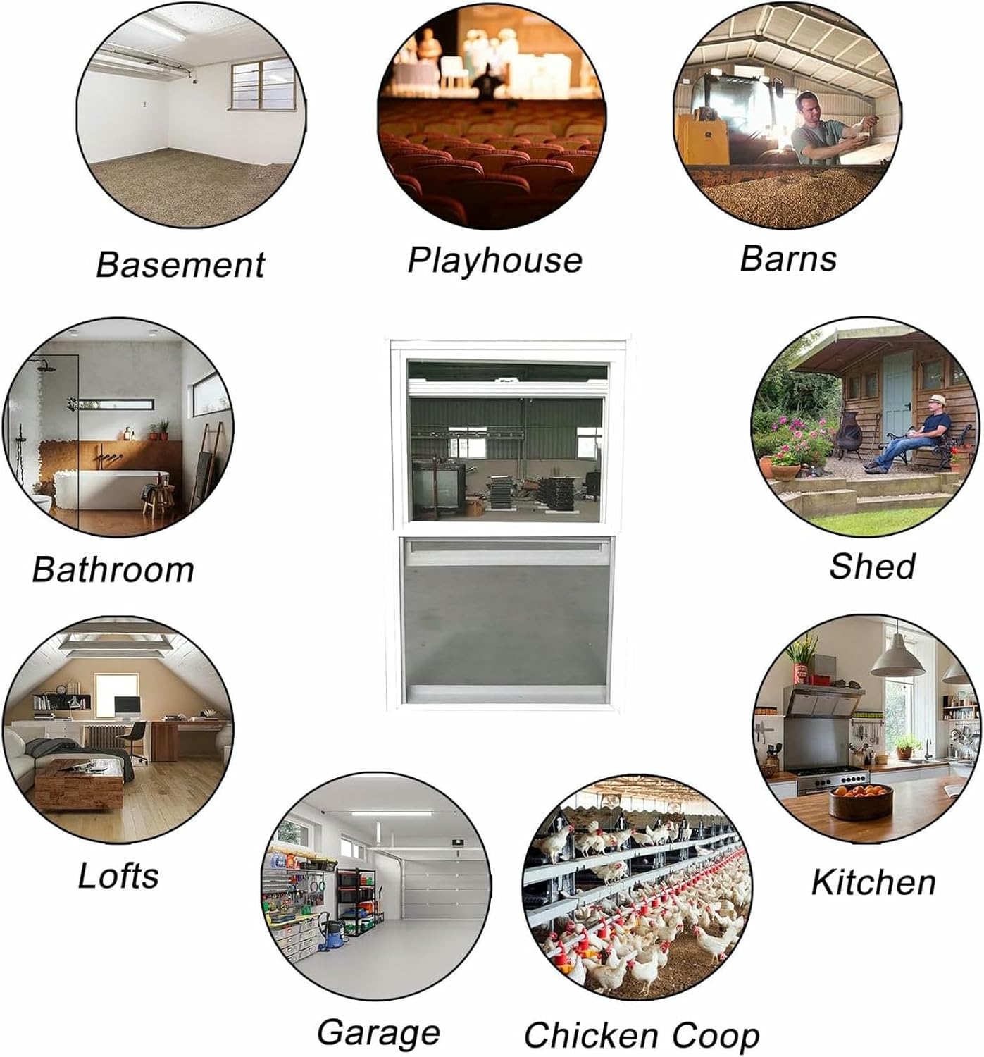 Description:-----Want replacement windows for your shed or chicken coop?-----Want to add some extra light to your small house space?Hurry up and take home our flush mount household window, it's a great choice! Not only does it not take up limited space, but it can also provide natural light and ventilation to enhance the functionality of the spaceSpecifications:Material: Aluminum Frame + Tempered GlassColor: White Frame + Transparent GlassAluminum Frame Thick: 1.4mm ThickTempered Glass Thick: 5mm ThickWidth: CustomizableHeight: CustomizableFeatures:Aluminum frame, strong, stable, rust-freePlayhouse windows can be pushed up and down as well as opened downMobile home windows with plush seals that keep cold air out and warm air inChicken coop windows with tempered glass are weather resistant, won't break for long term useFlush mount shed window ensure a seamless connection between the window and the buildingHousehold sliding windows are customizable in size, so you don't have to worry about compatibility issuesShed slider window are equipped with screens to prevent debris from entering while ensuring air circulationReplacement windows for home are a thoughtful and practical gift for farmers, gardeners, friends, neighbors, family and co-workersHow To Measure?1. Measure the top, center, and bottom of the width, keeping the smallest value2. Measure the left, center, and right side of the height, keeping the smallest value.How To Install?Step 1: Place the window into the window openingStep 2: Adjust the position of the windowStep 3: Fix the window with screws(Screws only secure the top half of the window frame)Step 4: Fill the gap with foam or structural adhesivePackage Includes:1 × Sliding Window (Includes mounting accessories)