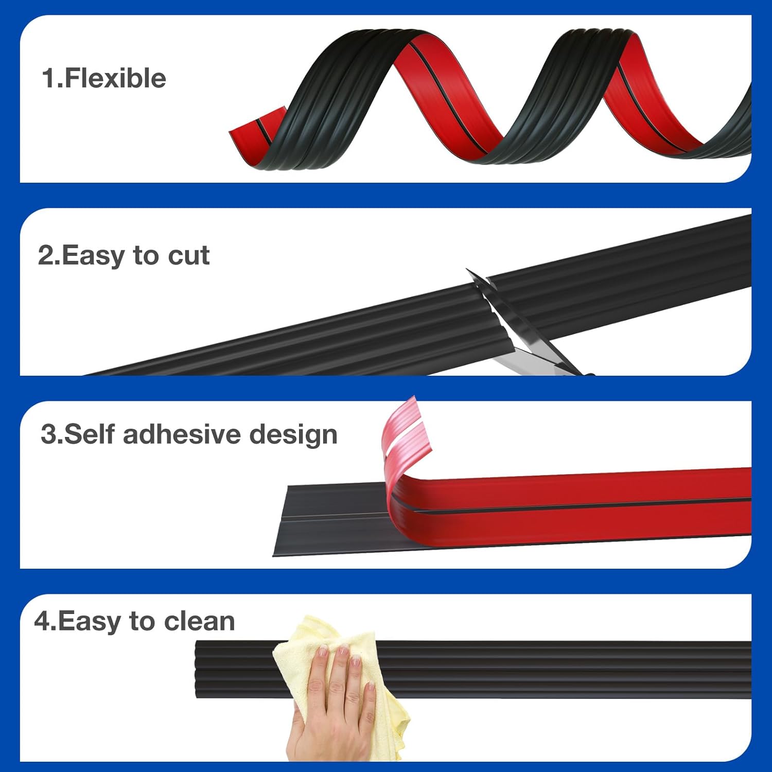 • Premium Materials:0.16 Inch(thickness) x 1.6Inch(width) x 40Feet(length).Made with clean and safe materials, our product ensures the safety of you and your family. It boasts exceptional flexibility, elasticity, and wear resistance, along with a long lifespan, waterproofing, stain resistance, corrosion resistance, and anti-aging properties. The rounded corners provide collision protection, shielding your baby from any sharp edges.