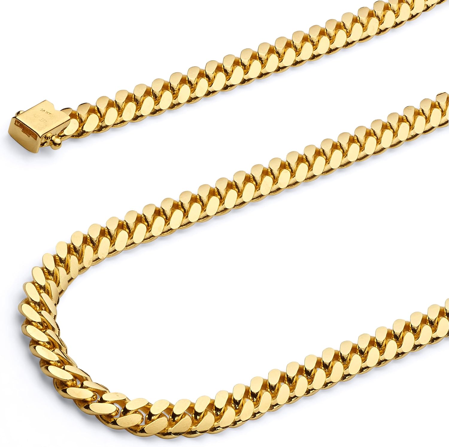 Wellingsale 14K Solid Gold Miami Cuban Link Curb Chains (Select Options)