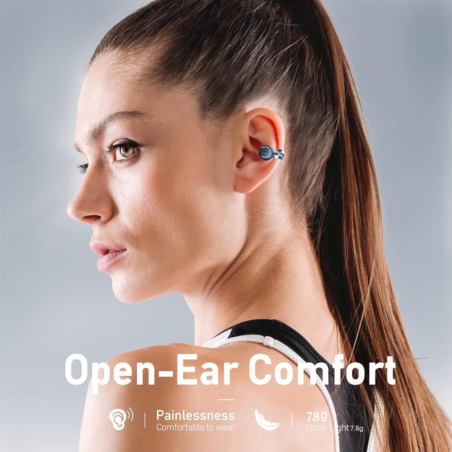 [Clip on Earbuds Design] The unique ear clip design ensures that these wireless earbuds stay securely attached to your ears, even during intense physical activity. Crafted from lightweight materials, they minimize pressure on the ears, providing optimal comfort for extended use. The open-ear listening feature allows you to remain aware of your surroundings while enjoying music or taking calls, making them ideal for outdoor workouts. [Premium Stereo Sound Quality] These clip-on earbuds boast premium audio drivers that deliver crisp and clear sound effects, immersing you in the music experience. Utilizing stereo technology, the sound is played through two independent channels on the left and right, creating a realistic soundstage and enhancing the depth and layers of the music. [18-Hour Play Time] With fast charging capabilities, these clip-on earbuds can be fully charged quickly, reducing waiting time significantly. The impressive battery life of up to 18 hours caters to your daily needs, eliminating the need for frequent charges and making travel more convenient. [IPX5 Waterproof Rating] Offering an IPX5 level of waterproofing, these wireless earbuds are resistant to water jets from all directions, making them suitable for use in rainy or humid conditions. Note: While they have substantial waterproof performance, they are not designed for complete submersion in water. Always adhere to the limitations of the waterproof rating during use. [Bluetooth 5.3 & Clear Call] Equipped with Bluetooth 5.3 chips, these open ear headphones provide a more stable connection and faster transmission. The built-in dual microphones enhance call quality, making conversations smoother and clearer. These headphones are compatible with a wide range of devices, including iOS, Android, iPads, and more.