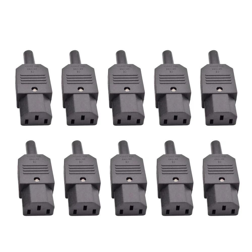 XMKT 5pcs 10pcs IEC 320 Cable Wire C13 C14 AC Plug Socket 10A 250V Black Rewireable Electrical 3 Pin Female Male Power Connector